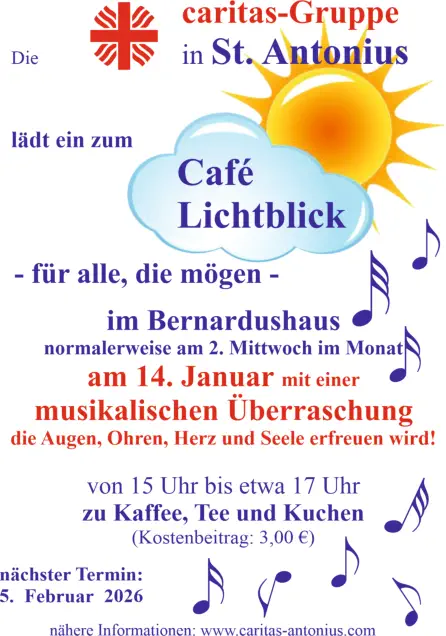 Wir starten /starteten mit unserem „Cafe Lichtblick“ am 11. Mai 2022 um 15.00 Uhr.