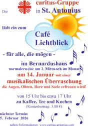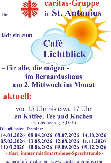 Wir starten /starteten mit unserem „Cafe Lichtblick“ am 11. Mai 2022 um 15.00 Uhr.